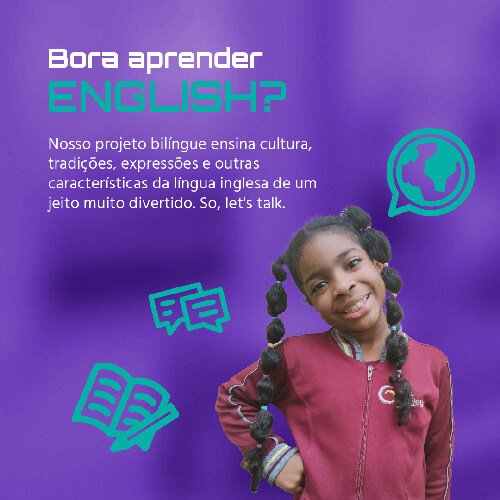 Nosso projeto bilíngue ensina cultura, tradições, expressões e outras características da língua inglesa de um jeito muito divertido. So, let's talk.